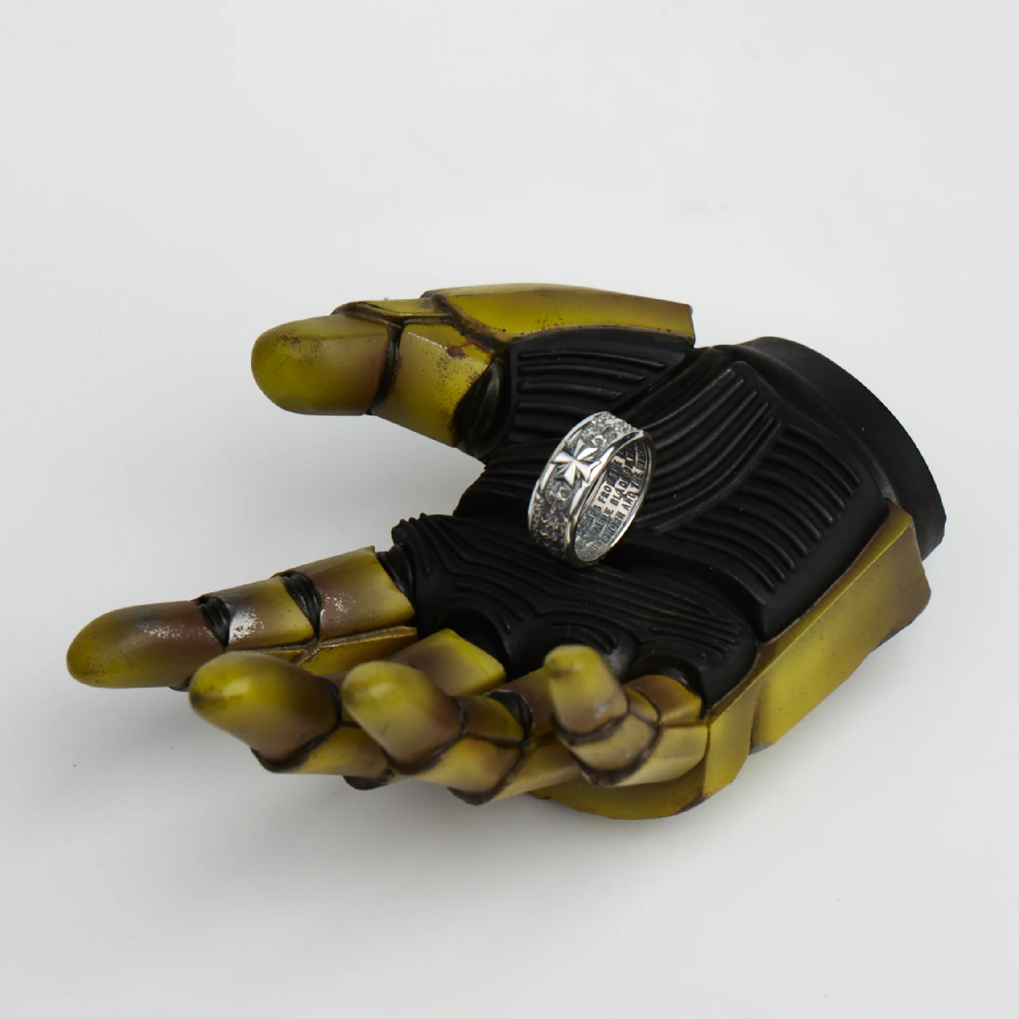 A ring depicting the iconology and heraldry of Black Templars, with chapter symbol, chains, skulls and image of stylized weapons as decoration. The selections from famous Templar Vows are inscribed inside the rings, as scions of Sigismund reiterate their oaths to the immortal God-Emperor.